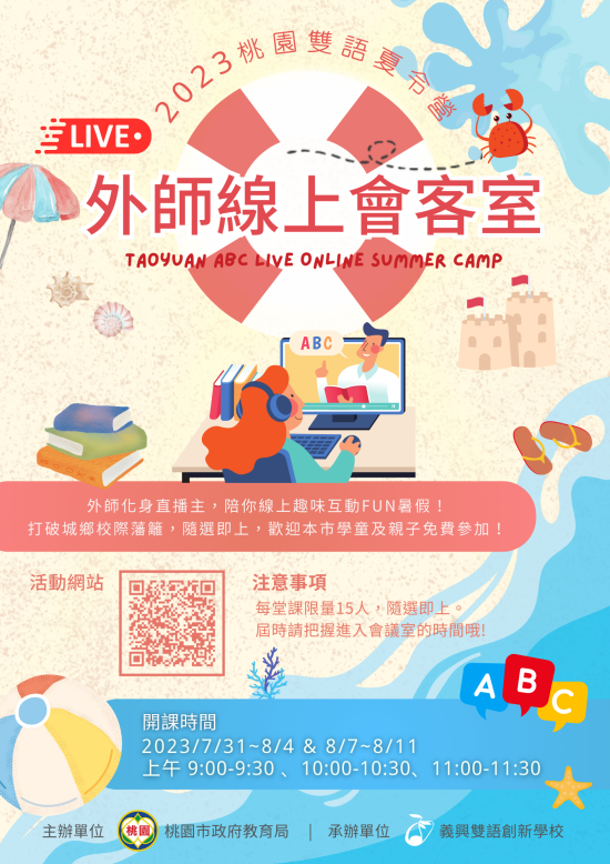 轉知桃園市「2023桃園雙語夏令營外師線上會客室」相關資訊。