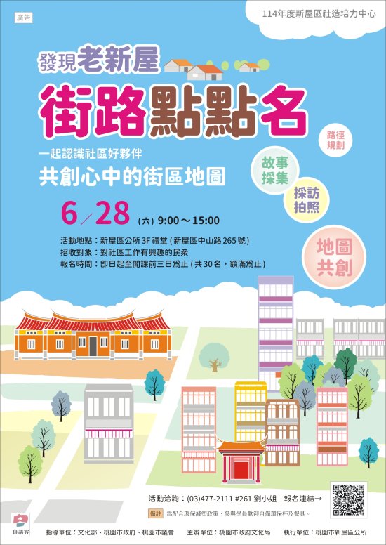 2、 | 共下來新屋尞-夏令營種子師資培訓:114年6月28日(星期六)下午 3時至下午5時。 |