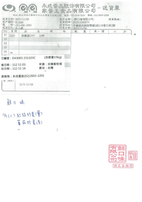 午餐副菜:紅絲炒蛋,蛋品證明請詳如附件。