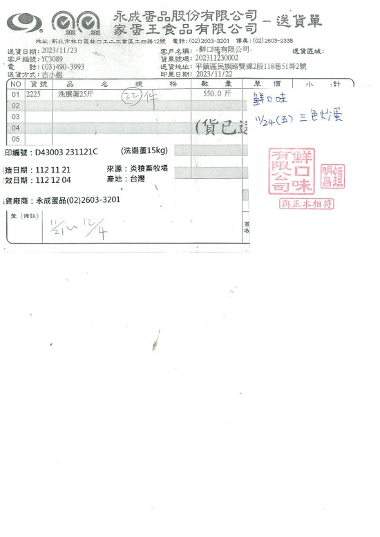 午餐副菜:三色炒蛋,蛋品證明請詳如附件。